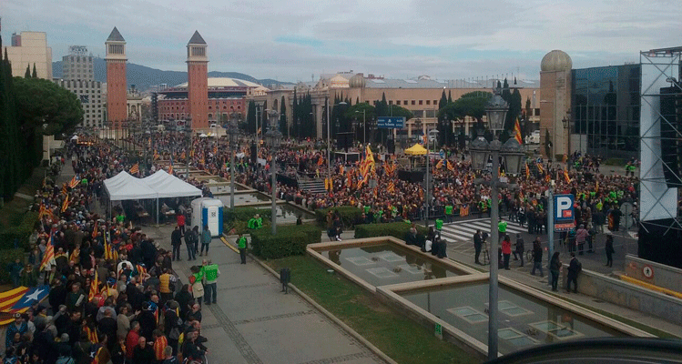 El pasado sábado 12 de noviembre se celebró una multitudinaria manifestación independentista en la Avenida de María Cristina de Barcelona, junto a las famosas fuentes luminosas de Montjuïc, en protesta por la judicialización de la política y dando apoyo explícito a diversos altos cargos independentistas procesados por actos de desobediencia al ordenamiento jurídico español, como Artur Mas, Carme Forcadell, o la alcaldesa de Berga, Montse Venturós.