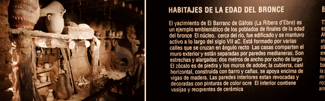 Seguimos ruta y, tras algunas vitrinas con restos óseos y líticos de los primeros habitantes del Principat, nos detuvimos ante una esmerada reproducción del interior de una vivienda de piedra y adobes de finales del siglo VI antes de Cristo (o del s. XXIV antes de Rafael de Casanovas, según se quiera mirar). No le faltaba detalle: sus estantes de madera con recipientes cerámicos en la pared, pieles extendidas en el suelo, un odre colgado del techo, horno para cocinar el pan… Pero lo que más nos llamó la atención fue su rótulo informativo.